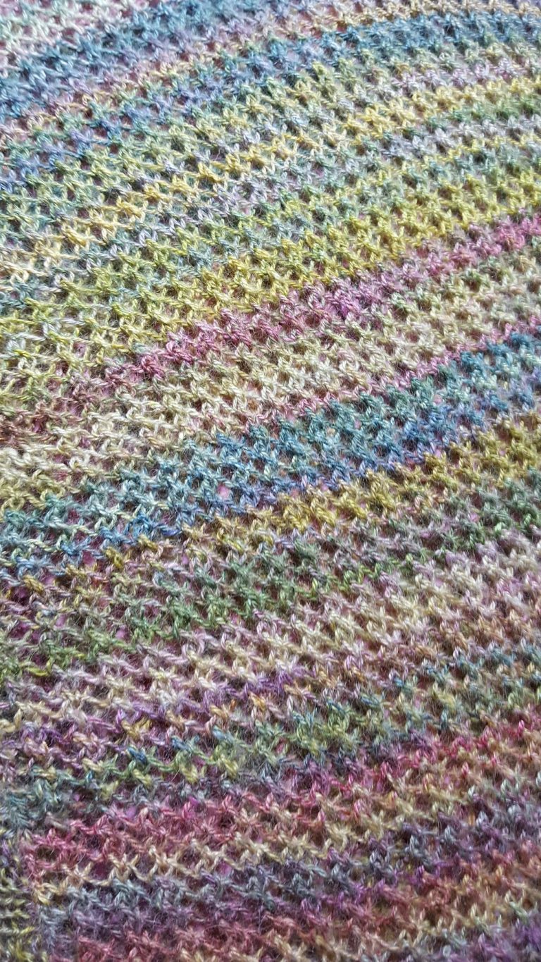 I have over the years gone from making traditional things such as gloves, socks, sweaters to more experimental knitted shawls using multi colours, stitches and short row shaping.
